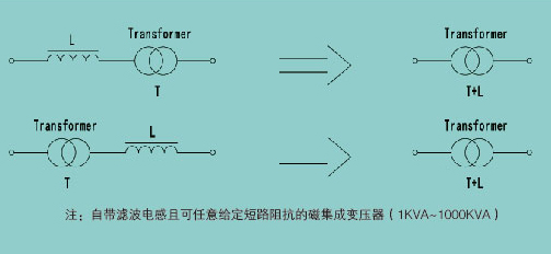 采用磁集成技術將變壓器與電抗器集成,能夠進一步提高UPS變壓器、地鐵牽引等變壓器的功率密度和工作效率,改善輸出波紋,提高輸出動態性能;有效減少一次 側逆變管損耗及磁件的體積和損耗。所謂磁集成技術,是將變壓器中的兩個或多個 分立磁件(discrete magnetics,DM)繞制在一副磁芯上,從結構上集中在一起,集 中后的磁件稱為集成磁件(integrated magnetics IM)通過一定的耦合方式,合理的 參數設計,有利于產品集成化、小型化;磁集成技術還能減少連接端,可有效減少大 電流場合連接端子的損耗。